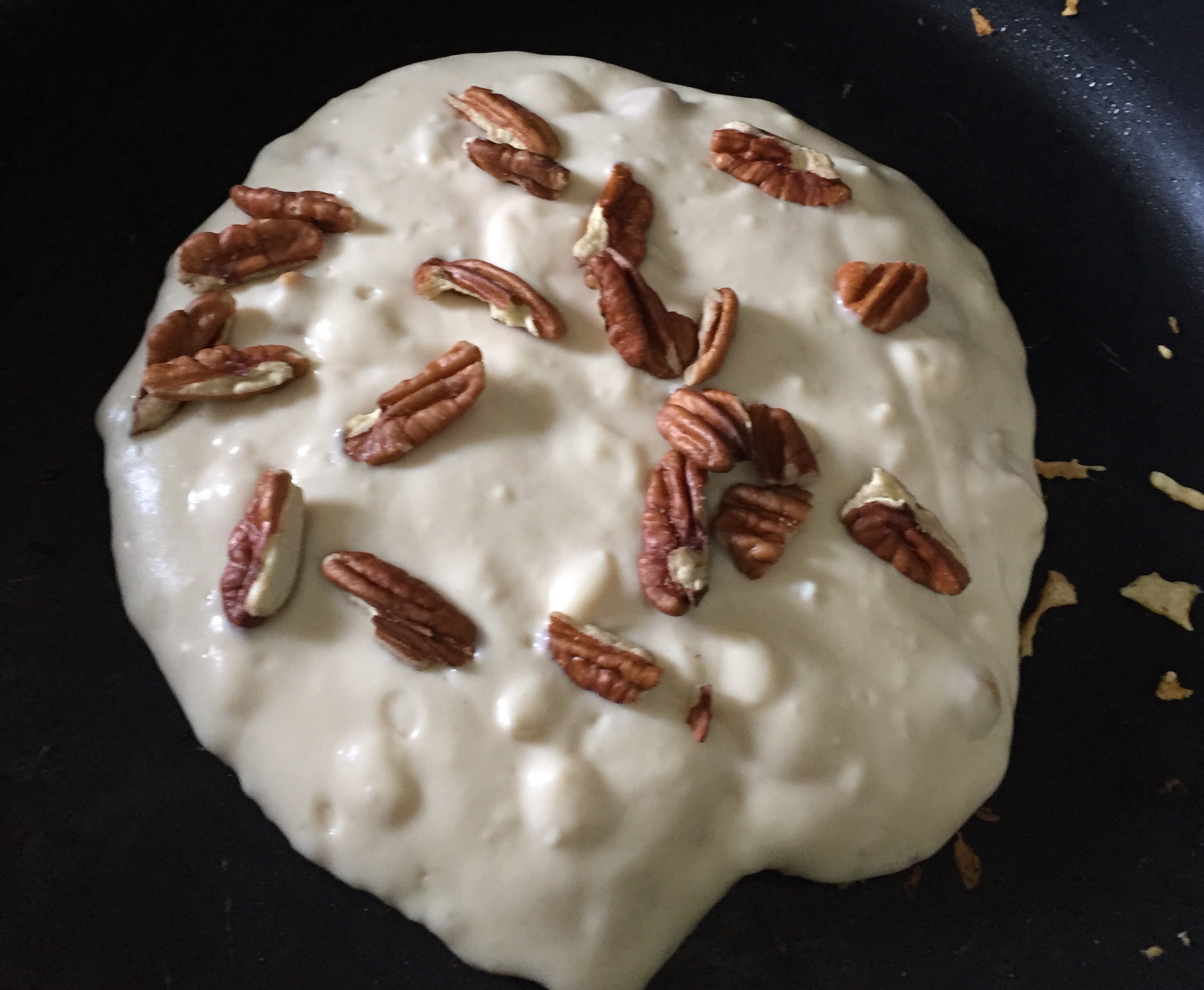 These are amaaaaaaazing! I can’t tell you the last time I had pancakes, so I was more than excited to indulge in these! I can eat only oatmeal for so long! You can be creative with ingredients such as protein, nuts, fruit and so on. We used pecans and peanut butter and white chocolate chips for our pancakes. I’m glad my husband woke up when he did or he wouldn’t have had anything to eat for breakfast! I couldn’t stop eating off the plate as they cooled! Get to cookin’ good lookin’!