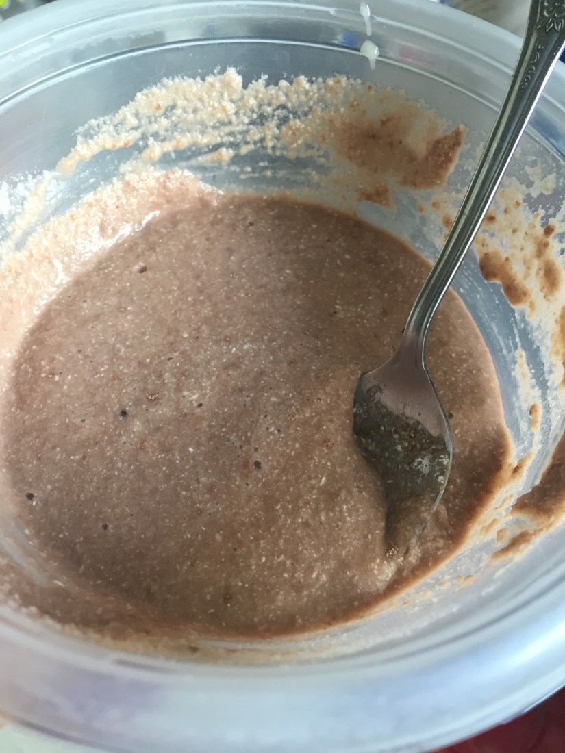 Lightly spray your small bowl or mug and microwave for 60-90 seconds, depending on your microwave. I check mine every 30 seconds and move my spoon around the edges.