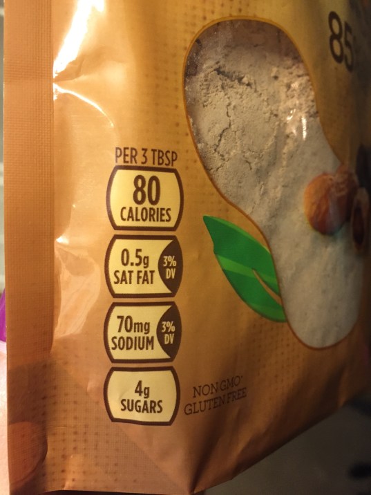 In comparisons to regular peanut butter, this product contains 85% less fat and 40 calories for TWO tablespoons or 80 calories for three. This product is low sodium, low sugar, as well as gluten free! In addition to smoothies and baking, I have a hard time thinking of what you CAN’T use this with!