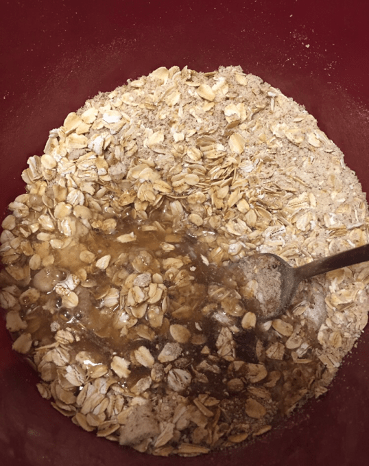 -In a large bowl, mix the almond flour, oats, baking soda, baking powder, cinnamon and stevia together.