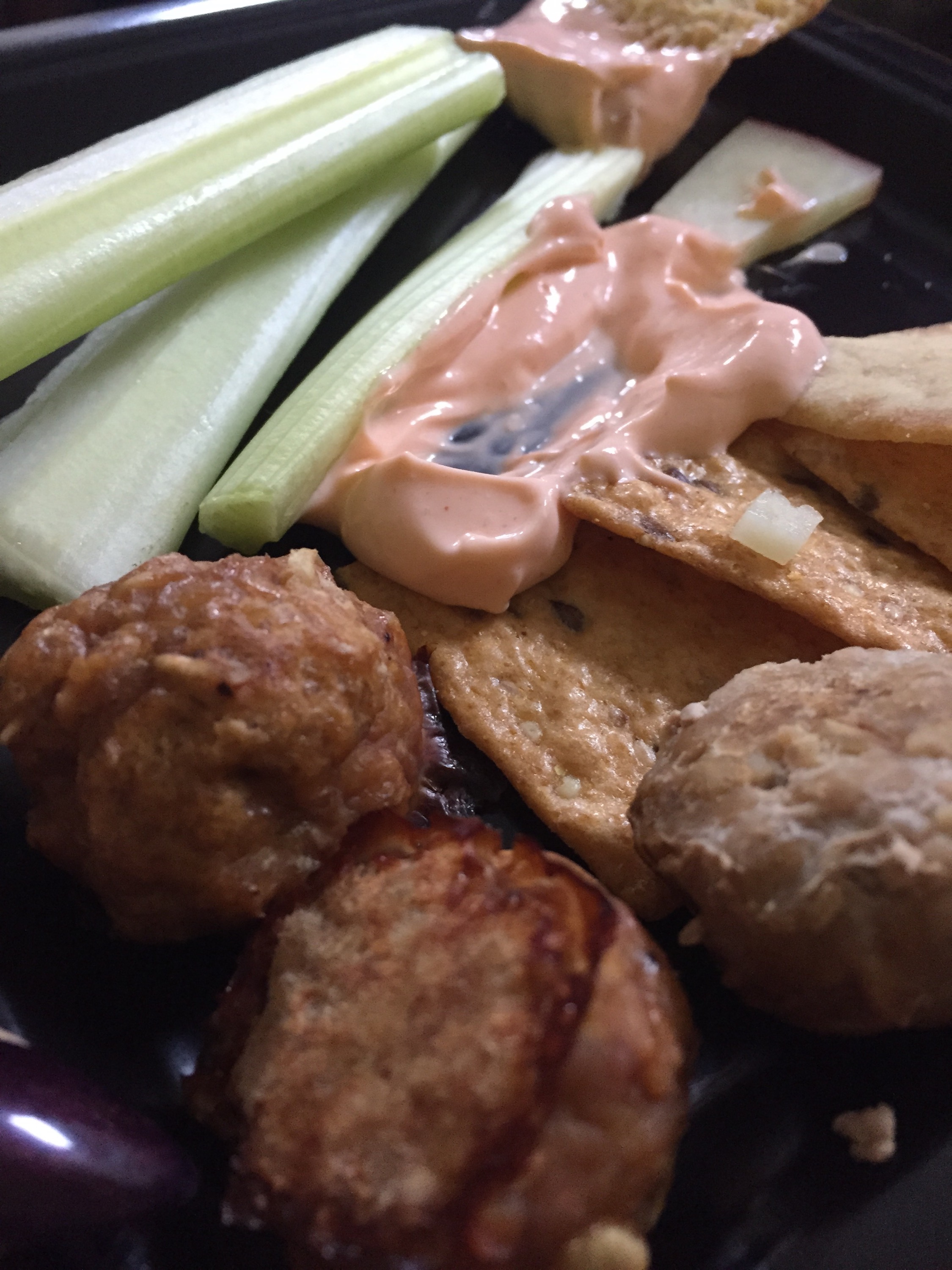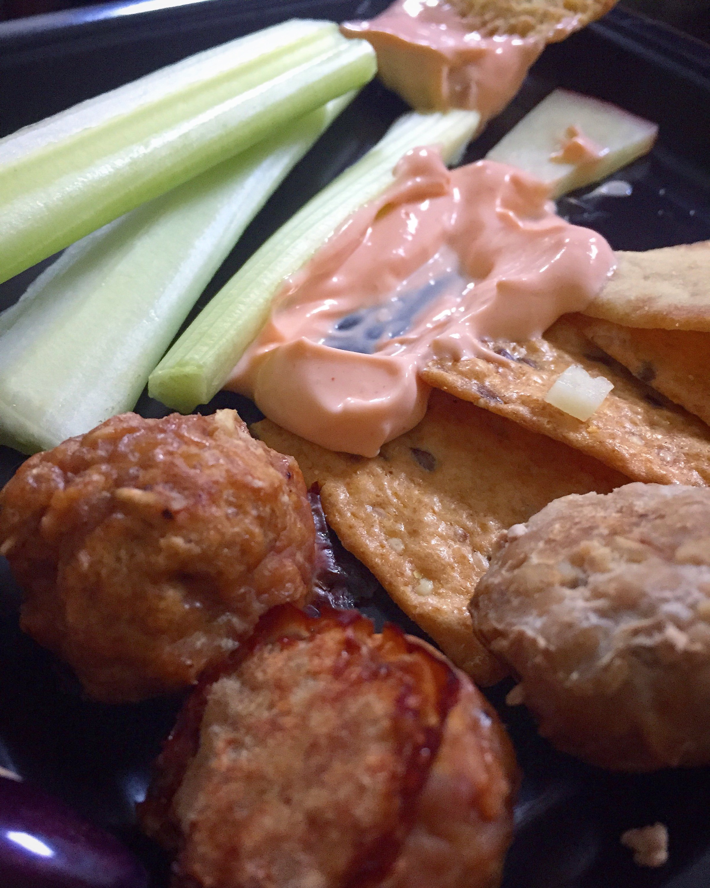 I prepared my turkey meatballs and a delicious buffalo dip made from greek yogurt! So easy and SO good! Throw in some pita chips, celery and you’re good to go!