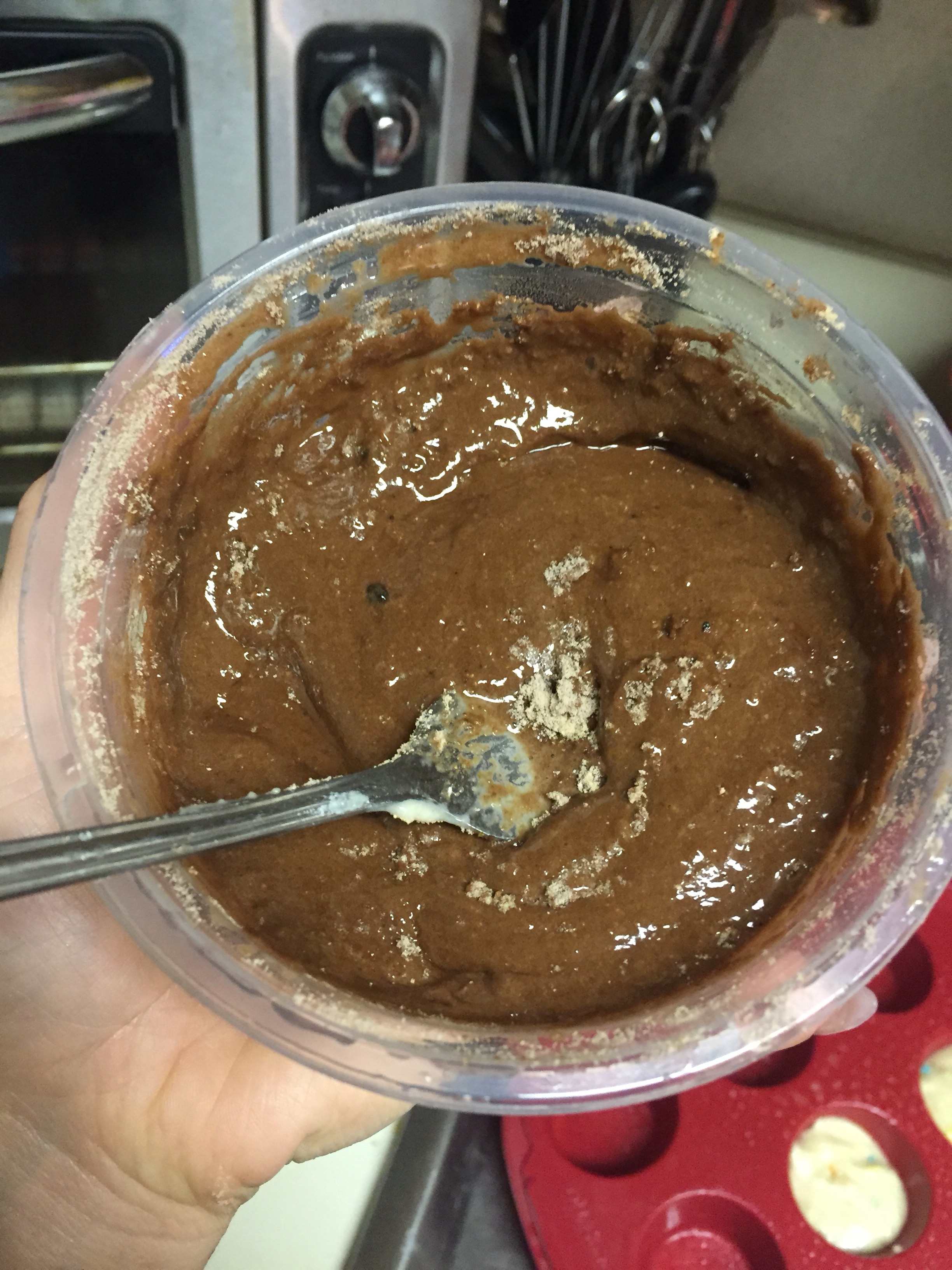 It packs quite a punch of protein with two scoops in the batter and 1 scoop used to make my homemade icing!