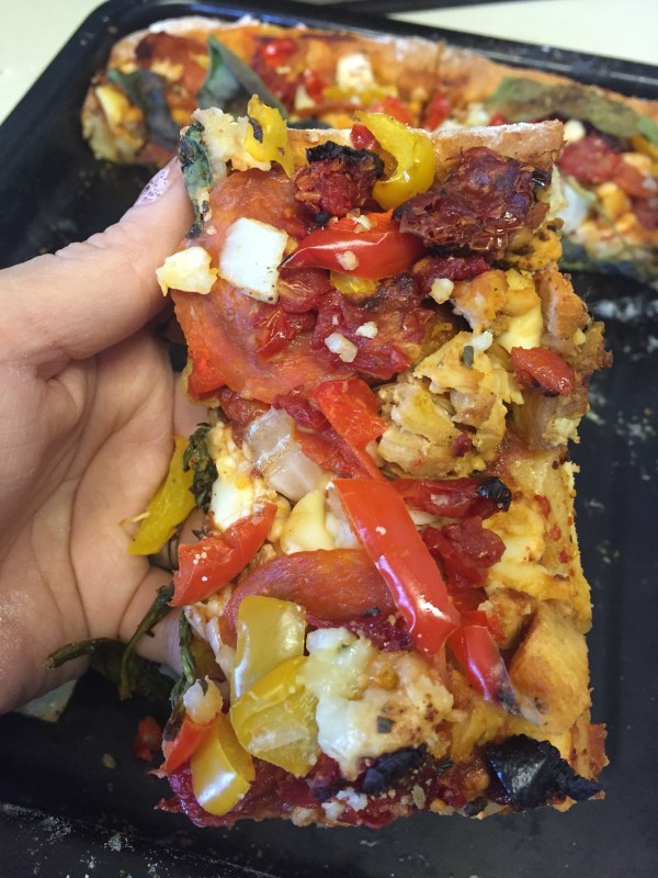 A couple days following, we had enough dough to make two more pizzas! We tried a thinner crust this time and it was just as good!