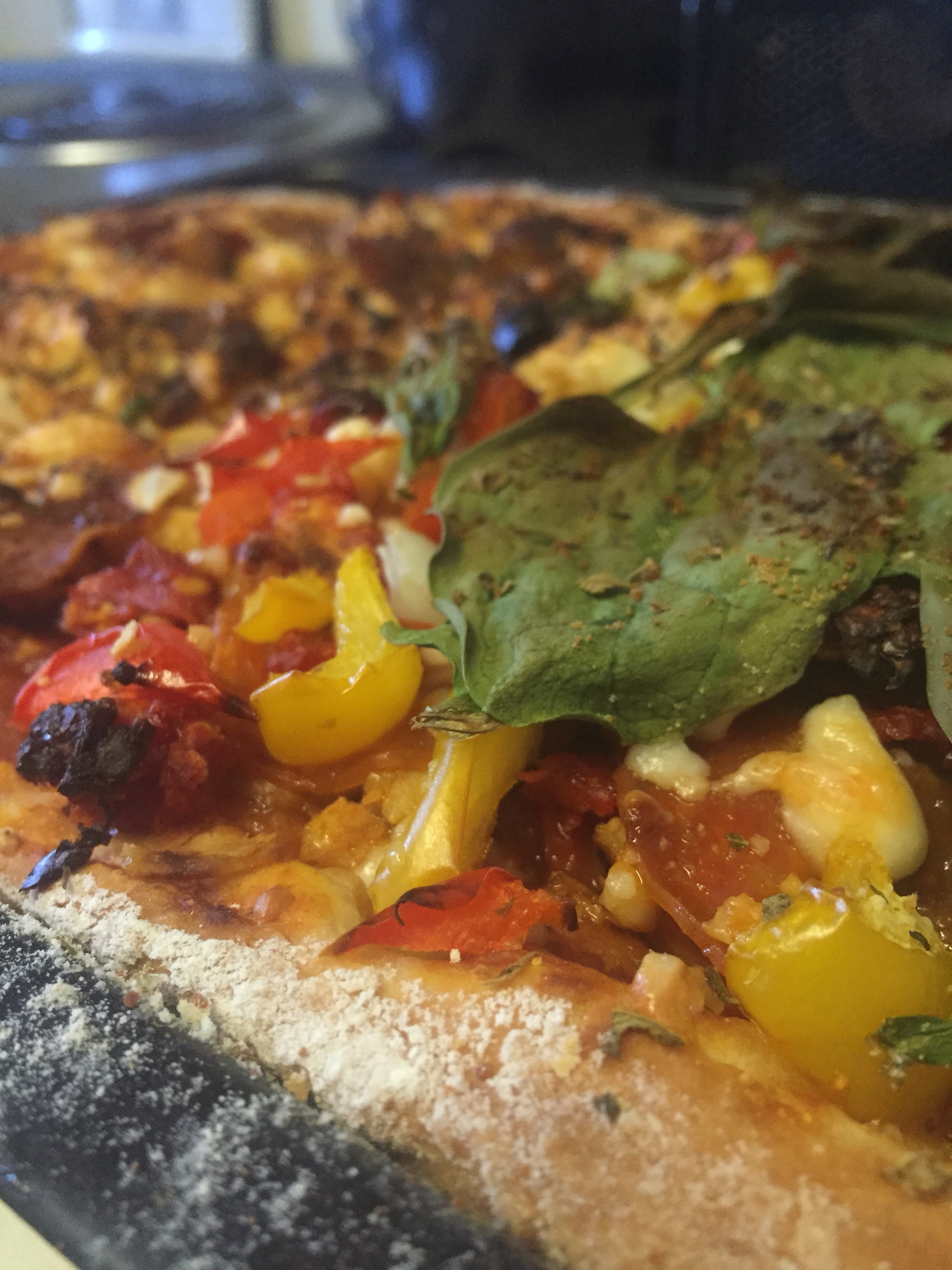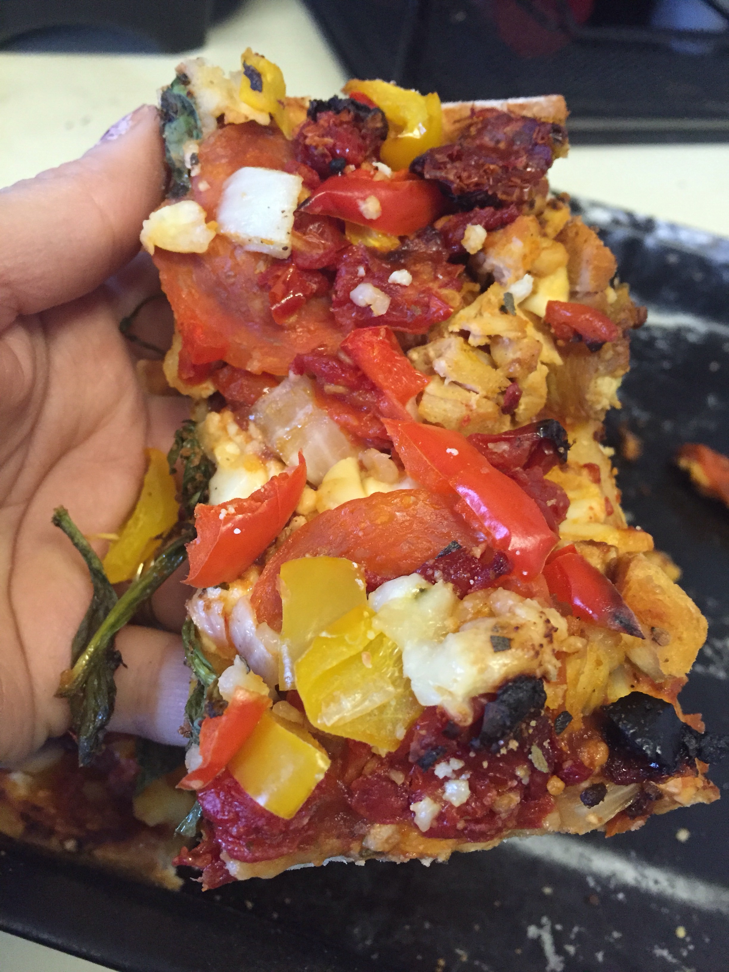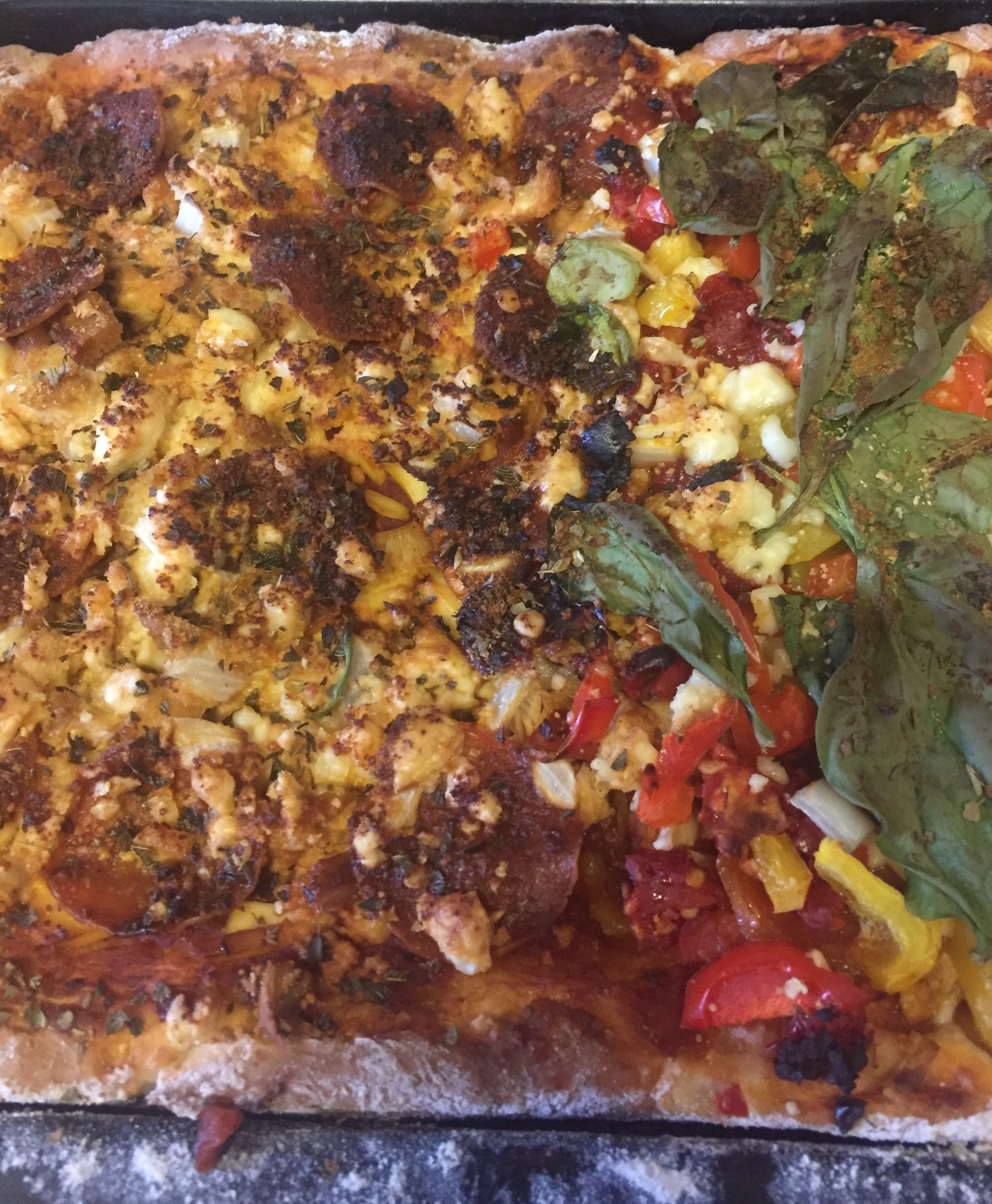 A couple days following, we had enough dough to make two more pizzas! We tried a thinner crust this time and it was just as good!