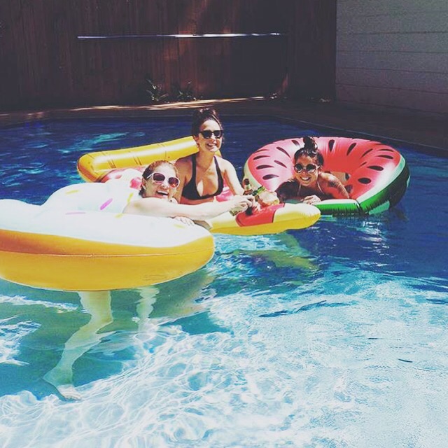 Even a little hang time with friends can be time used as a mini workout. We raced from one end to the other in our floats, jumped in and out of the pool trying to land on each one, tossed a football through the center of the floats and so on!