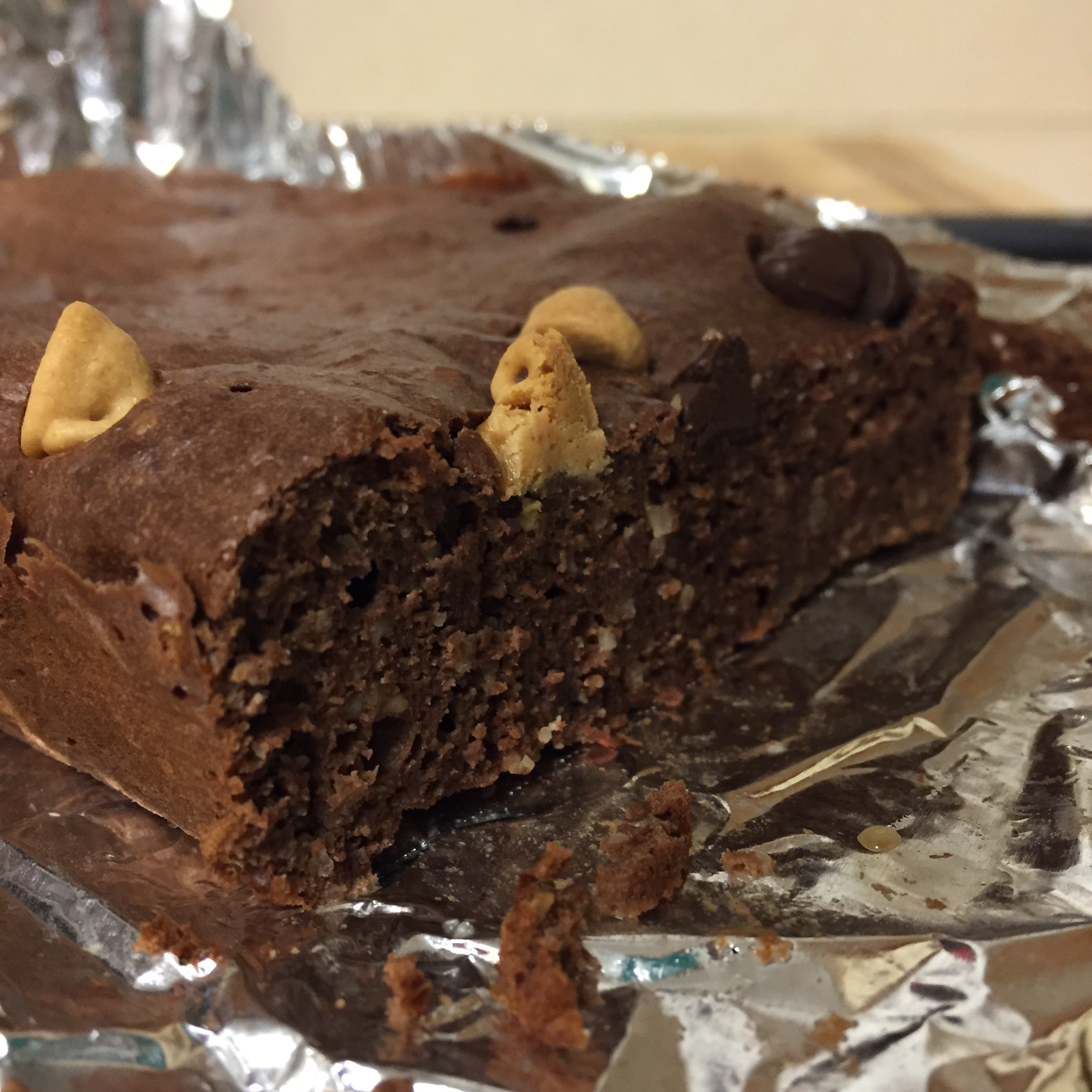♥ Pour your batter into a lightly sprayed mini loaf pan and top with your chocolate and peanut butter chips or any other desired toppings! Bake in the oven at 325 for 30-35 minutes, being sure the center is cooked through.