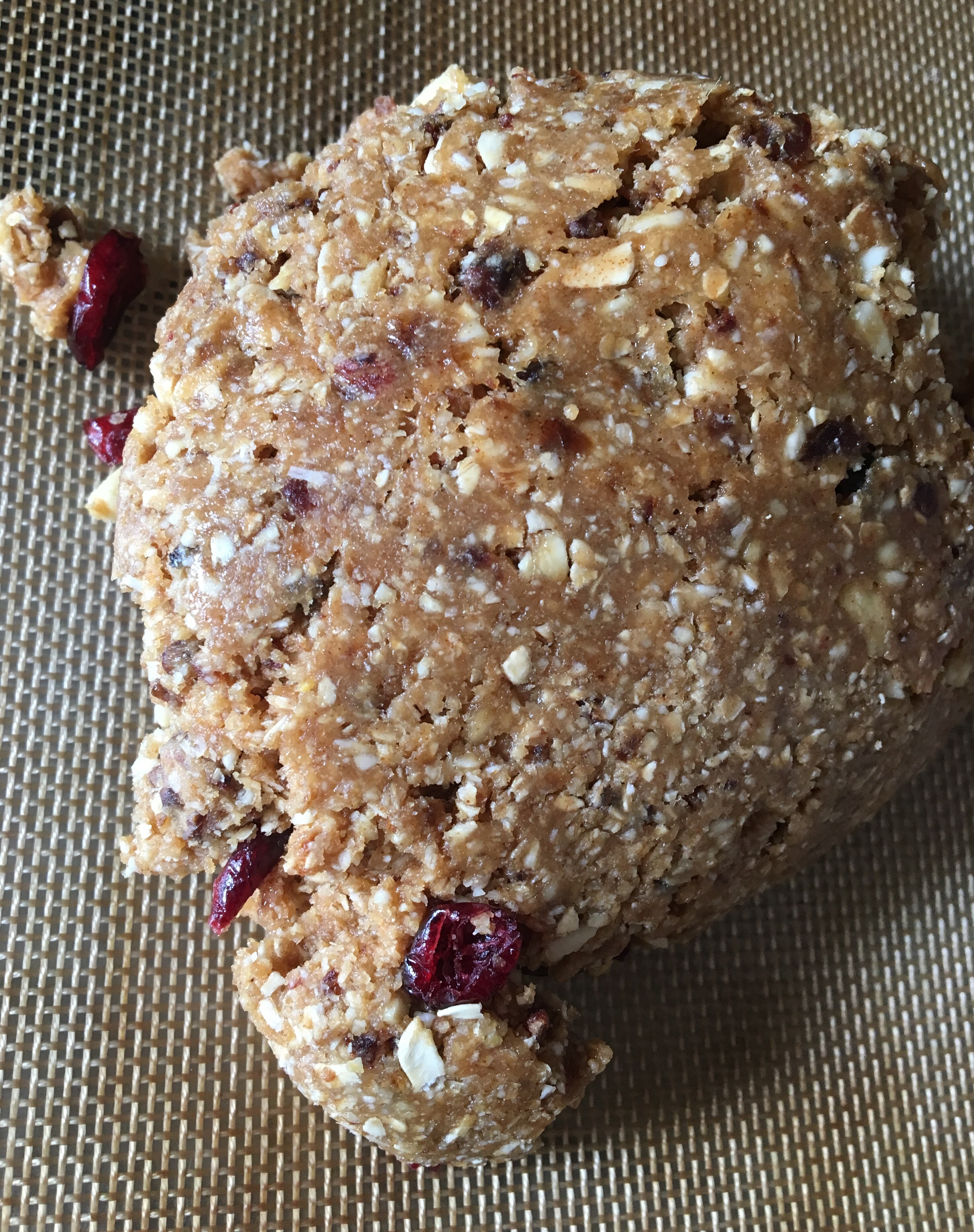 After everything’s is blended, place your thick dough ball in a large mixing bowl and fold in your craisins.