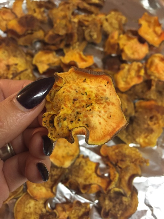 For my chips I did one batch savory with an Italian/peppery blend and the other sweet with coconut oil and cinnamon!
