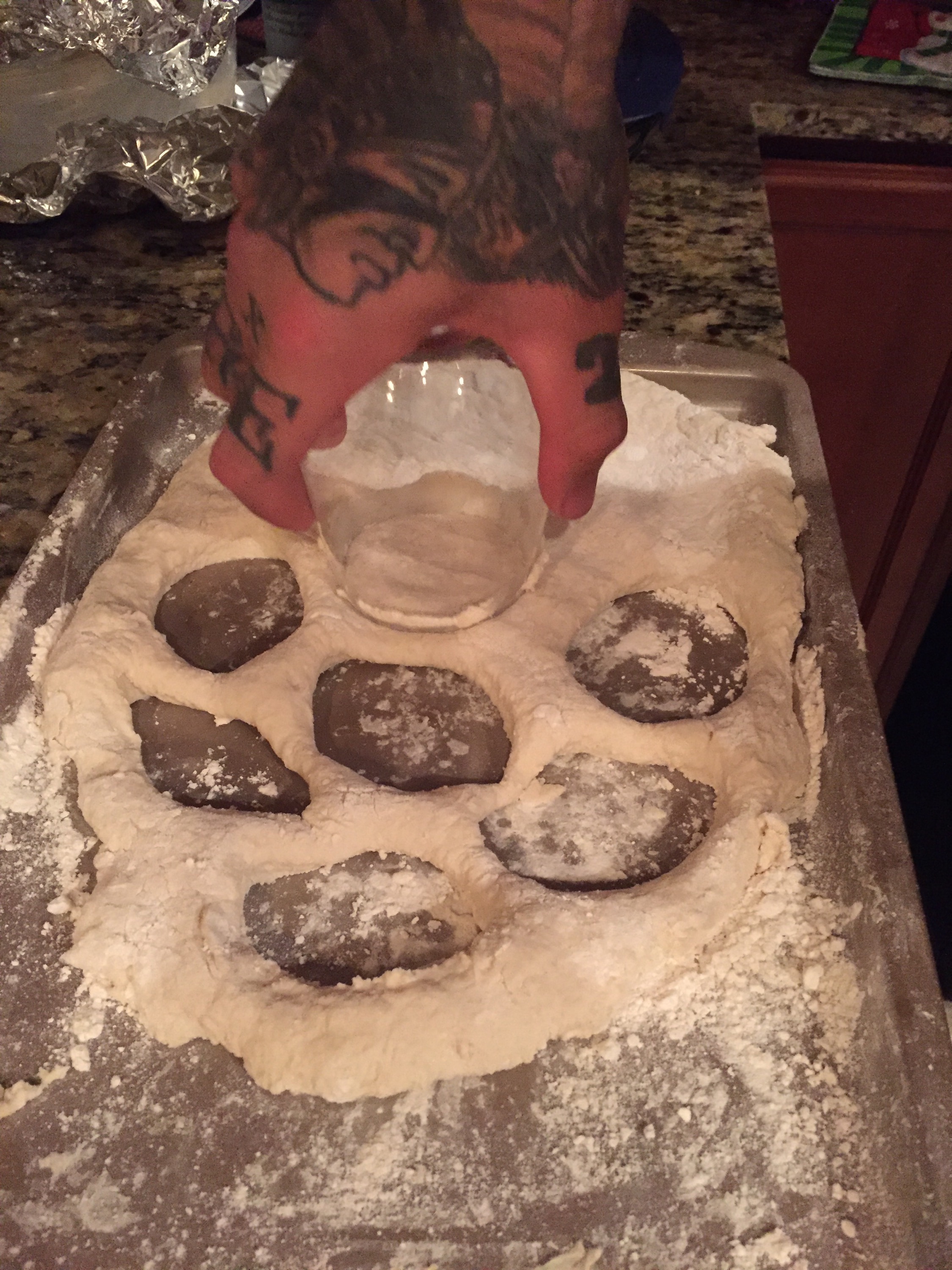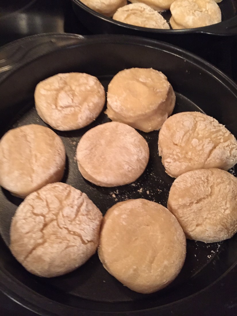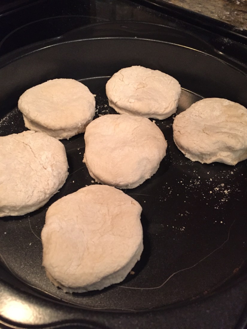 Use a cookie cutter, round lid, or cup to cut out your biscuits. We used cups!