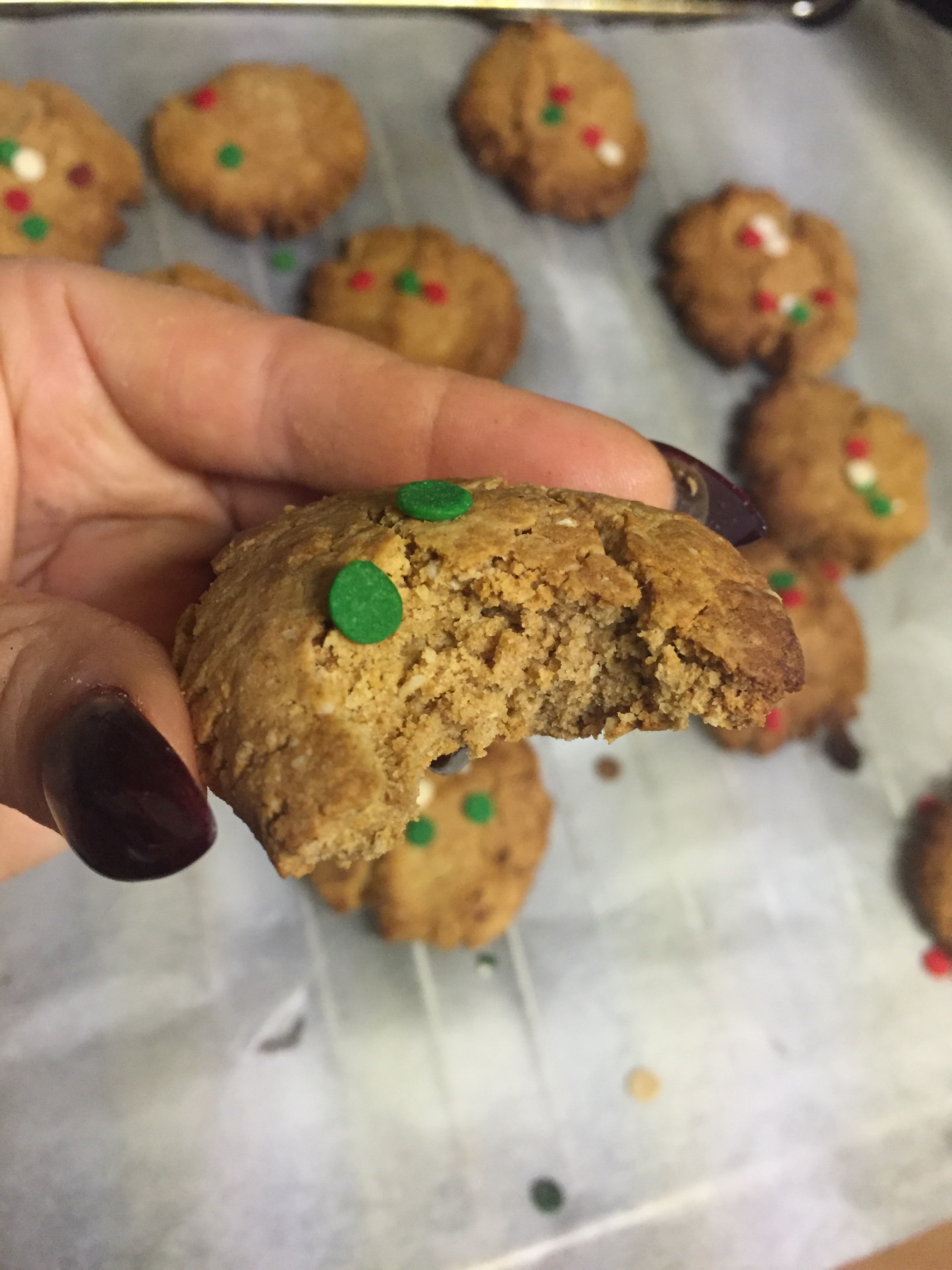 ♥ Form your dough into bite size cookie balls and place on lightly sprayed parchment paper or a cookie sheet.