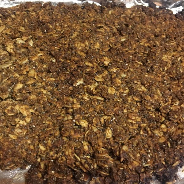 ♥ Lightly spray a pan or brush a pan with coconut oil and press your oat ‘dough’ into a flat rectangle shape.