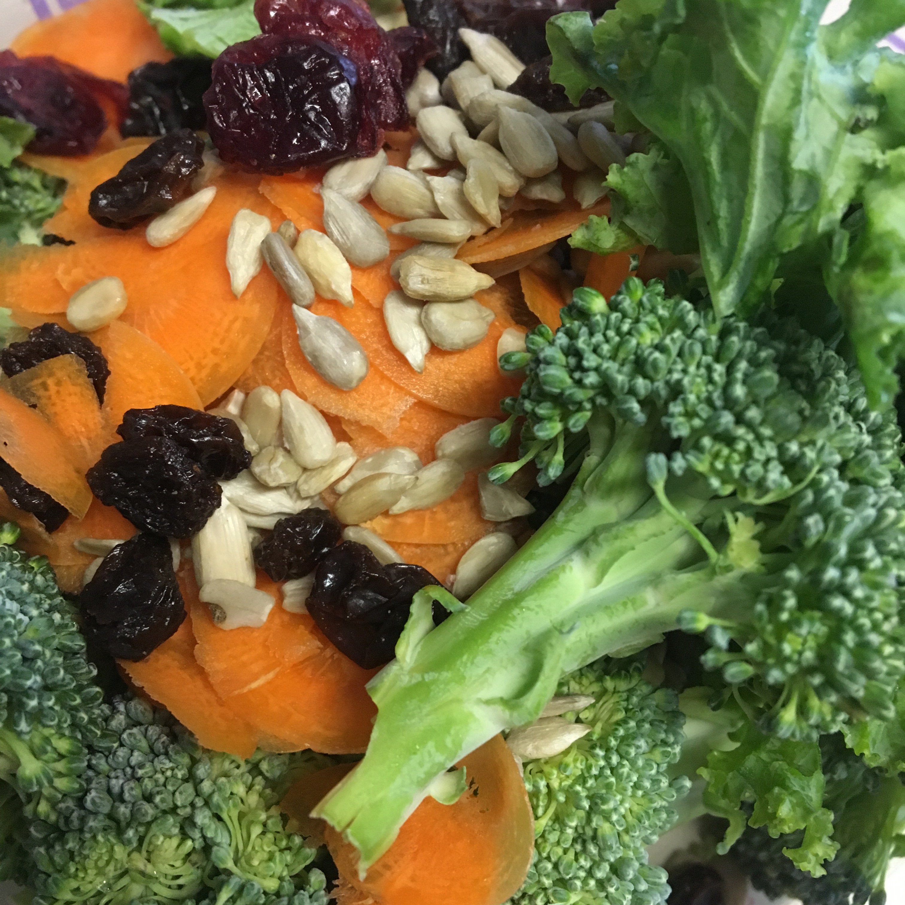 I would convince myself it was a healthy dish even though the thought of a heavy, sugary, creamy sauce is what kept it all together. Down the road I looked up recipes and boy, was I more than right! Most broccoli salads call for bacon, mayonnaise and almost a 1/4 cup of sugar! No ma’am!