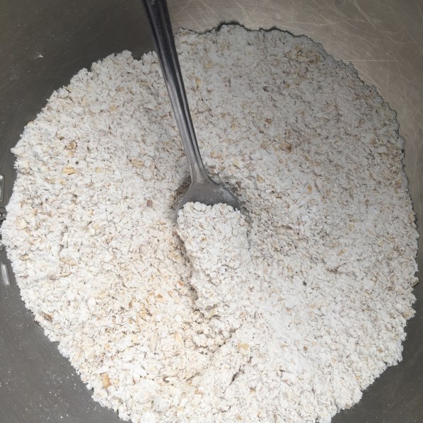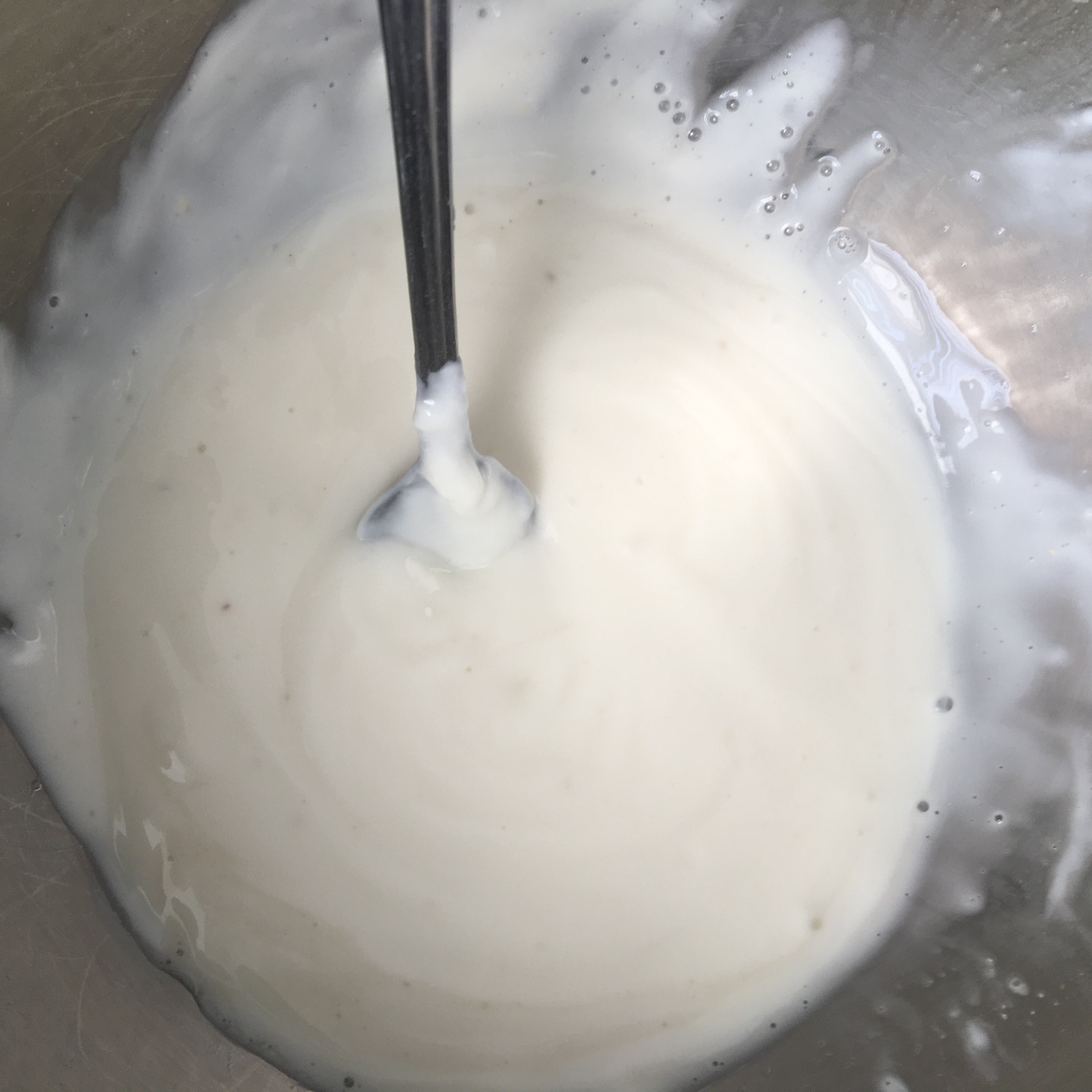 - Pour the wet ingredients into the bowl of the dry to form a batter.